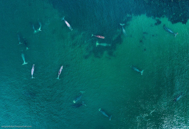 В бухте Онгачан на Шантарских островах обитают косатки и дружелюбные киты. Наблюдать их можно прямо не выходя в море, с берега. Белухи, косатки, серые, японские и гренландские киты приходят сюда кормиться. Сейчас на островах можно увидеть только работников метеостанции, многочисленные птичьи базары и лежбища нерпы. Но когда-то здесь жили китобои. В середине XX даже считали, что популяции серых и полярных китов на Шантарах полностью уничтожены. Но запрет китобойного промысла позволил им восстановиться. Целые стайки (около 10 особей сразу) серых китов проходят всего в нескольких метрах от берега, поэтому их можно увидеть наверняка.